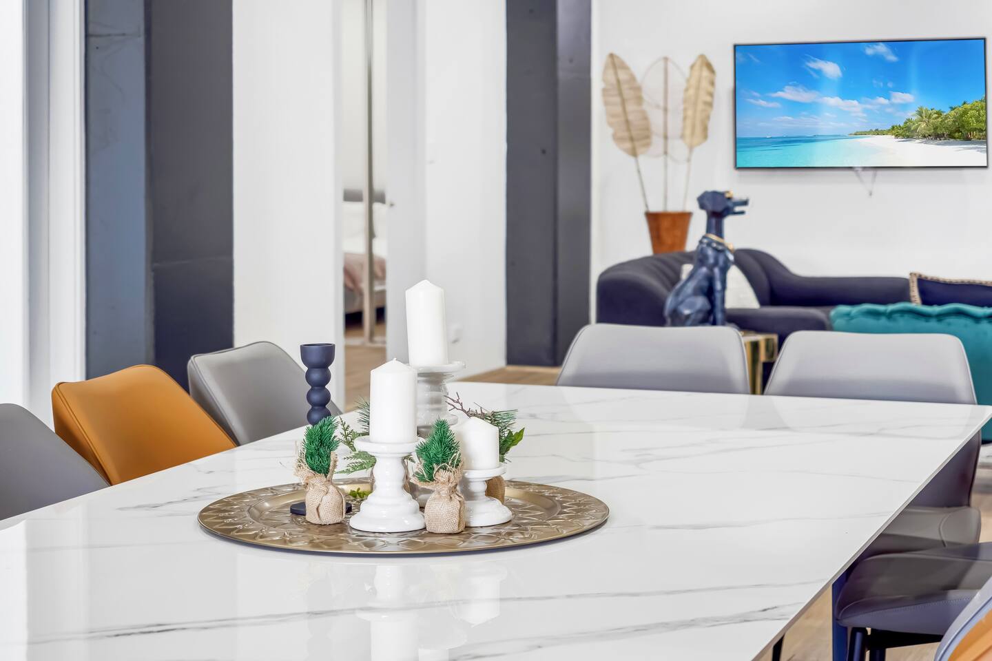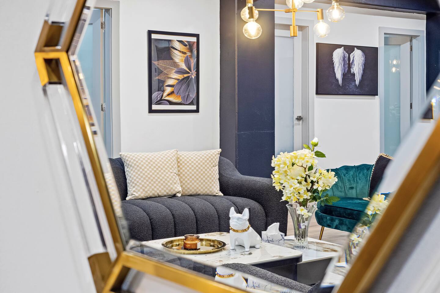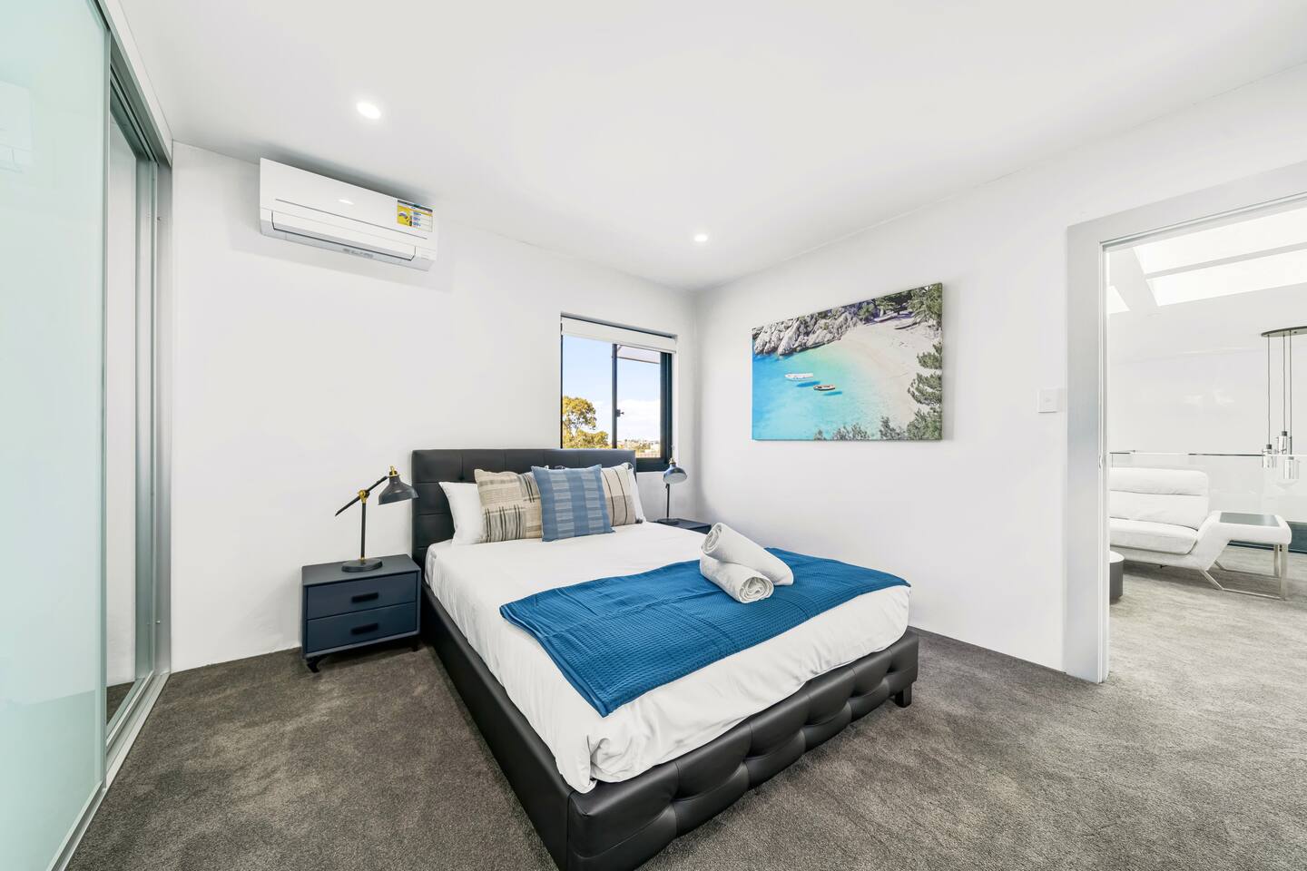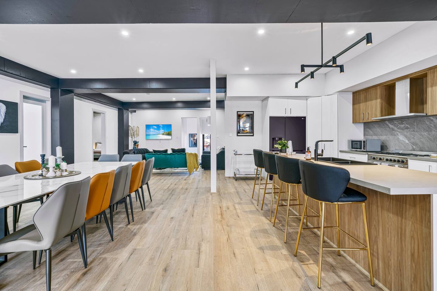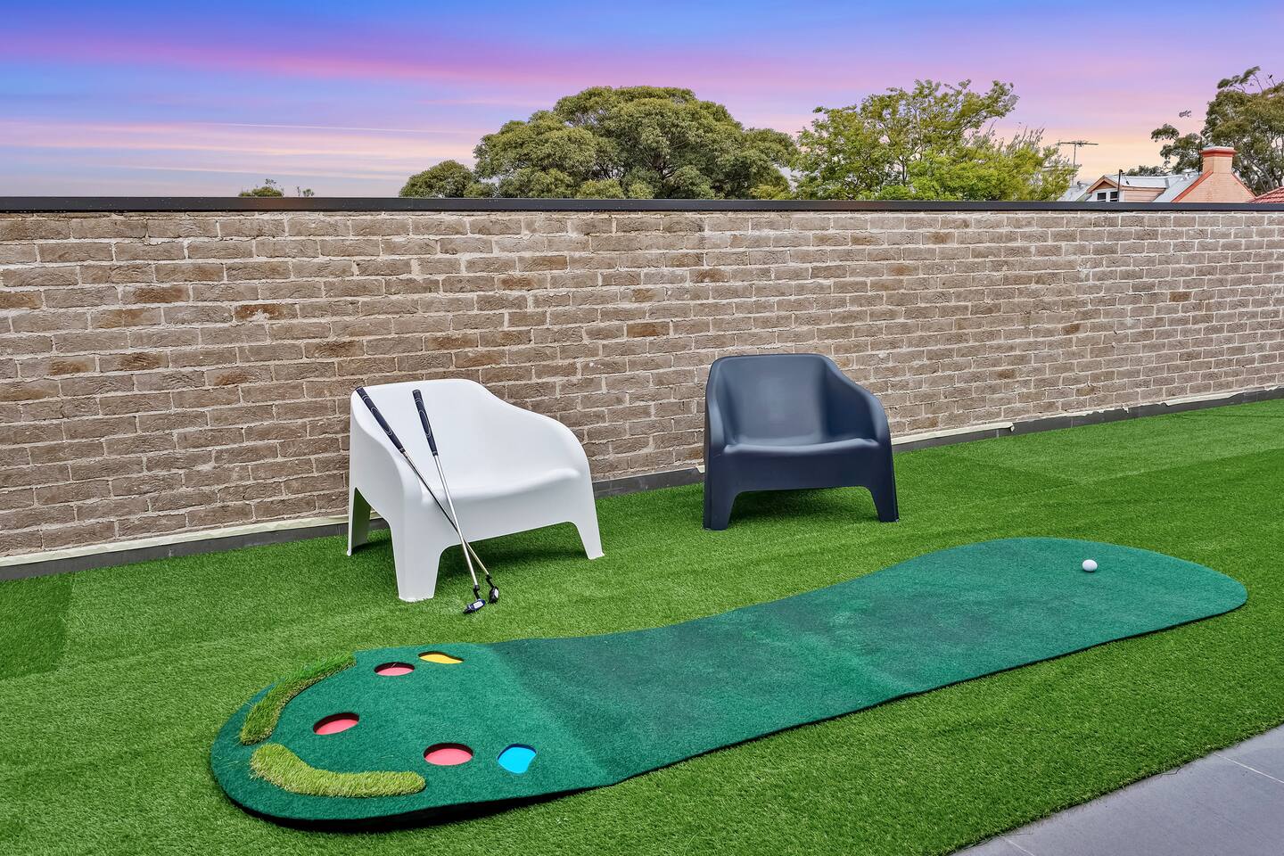 Best known for family/company retreats, parties and functions with easy access to an array of shopping boutiques, restaurants, the University of Sydney and the airport. As its name suggests, the King’s Deluxe is truly offering a 5-star experience from indoor to outdoor. The whole penthouse is artistically decorated with fashion and plushy furniture specially selected to impress and indulge you. The open-plan kitchen is equipped with a full range of high-end appliances to meet your catering needs for food and beverage. A grant dining table seats for 14, along with a stone bench top island, ensure a generous space for everyone to socialise and enjoy while eating and drinking. There’s also an outdoor area for BBQ, so you’ll never run out of options from indoor to outdoor. Your entertaining area won’t just be confined to the ample living room. There are areas dedicated to cinema, karaoke and board games ready to use. Fancy about outdoor activities? Lie down on the lounge chairs on the upper-level balcony to enjoy the sunshine and fabulous drinks; relax in the 6-seater spa while having BBQ served alongside; the mini golf is great for team/individual competitions to spice up the party, or get your little ones to play and laugh on the mini lawn. There are 5 bedrooms, all en-suite, four with queen-size beds and one with two single beds. All rooms are provided with deluxe bedding to ensure your comfort of sleeping after a whole day of activities. A dedicated workspace with unlimited and speedy wifi is also available just in case you have urgent duty calls. What the property offers: Roof top heated outdoor spa fit up to 6 people BBQ utilities Outdoor dining, sofa and sun lounge Mini golf court Cinema/Karaoke Modern fully equipped kitchen Front and back patio on both floors 5 generous bedrooms and luxury bedding Dedicated work space Unlimited fast speed wifi