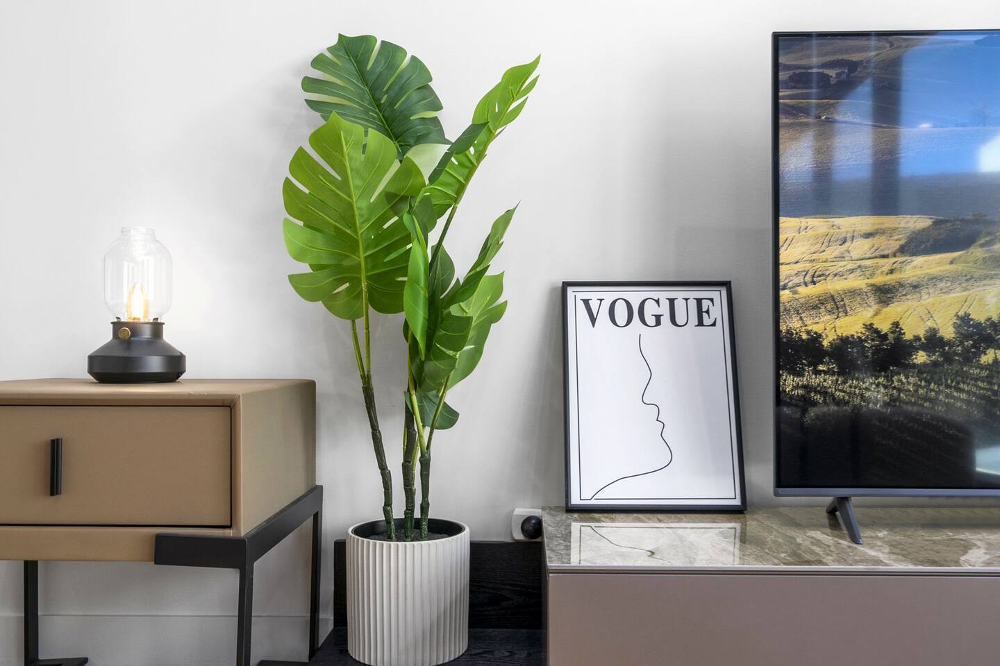 This cozy apartment comfortably accommodates two guests with a plush queen-size bed, ensuring a restful night's sleep after a day of exploring the city. The modern decor and thoughtful amenities provide a comfortable and inviting space for your stay. The space is thoughtfully designed with all the amenities you need for a pleasant stay, including a fully equipped kitchen, high-speed Wi-Fi, and a cozy living area.